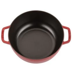 Impress your sweetheart tonight with hearty roasts and soups thanks to the Staub Heart Shape Cocotte/Dutch Oven. Crafted from strong, durable cast iron this heavy weight cocotte will be your go to cookware for numerous family favorite recipes including but not limited to macaroni and cheese, braised beef and chocolate souffle. The tight-fitting lid retains essential moisture and features Self-Basting spikes that contribute to a more effective basting while you’re cooking. The smooth enamel bottom works on all stovetops and is oven safe up to 500 degrees Fahrenheit. With no seasoning needed you can start making dinner meals and desserts everyone will love. The romantic cherry color and chip-resistant finish makes for a perfect centerpiece while serving and with a lifetime warranty you can expect to have this wonderful Staub Heart Shape Cocotte/Dutch Oven to pass down to generations in your family.