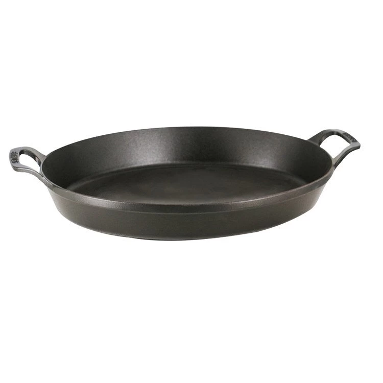 For centuries, cooks have taken advantage of the natural heat retention and redistribution properties of cast iron. Staub builds on this tradition with their enameled cast iron cookware. Black matte enamel inside and cooking surface creates a culinary advantage for better browning, braising, and roasting. Colorful enamel outside adds flare to your kitchen and table. Safe for use on all types of heat sources, including gas, electric, and induction, and oven safe up to 500 degrees F. Chip resistant and dishwasher safe. Made in France.