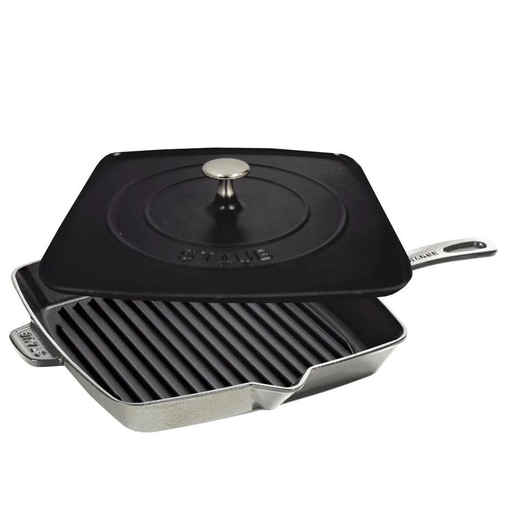 Staub Square Cast Iron Grill Pan Combo Features/Includes: