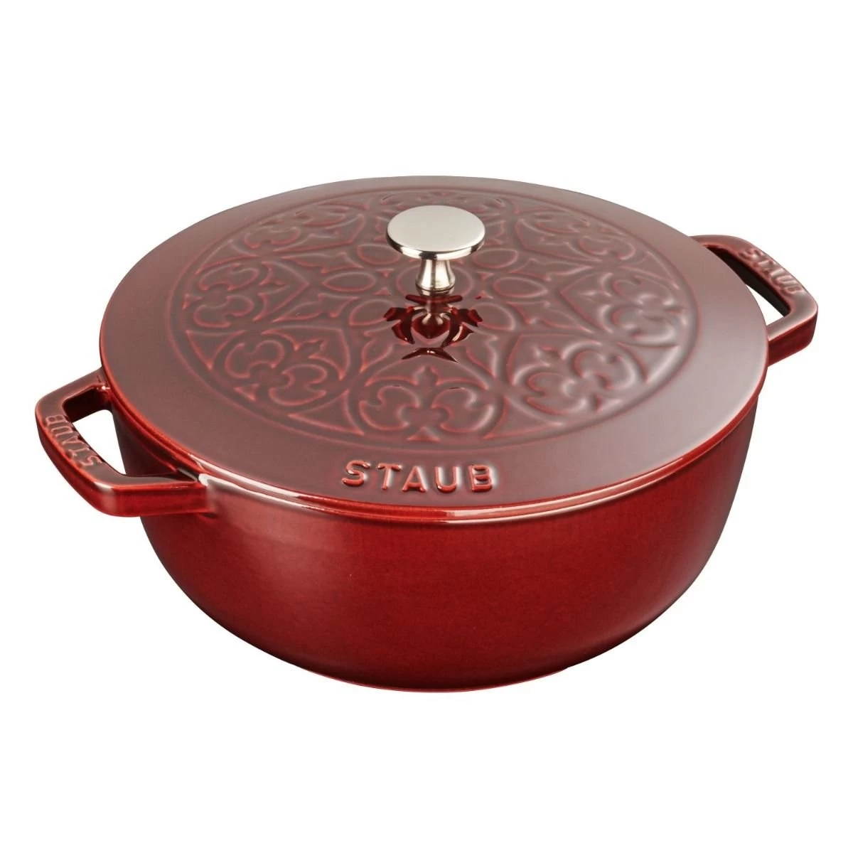 Staub 3.75 Qt Essential French Oven with Lilly Lid (Grenadine) Features: