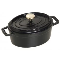 The oval cocotte is 15 cm wide, 9.2 cm high including lid, and has a 0.6 l capacity. It looks stylish both in the kitchen and on the table and is popular as a serving utensil. The pot originates from France and is ideal for delicious recipes ranging from goulashes to ratatouilles.