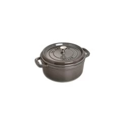 Cooking is a joy when using the round, graphite grey cocotte from the popular La Cocotte series. It looks good in any kitchen and dining area and will catch the eyes of your guests. Cocottes originate from France and are traditionally used for slow cooking. They are ideal not only for French specialties such as coq au vin, but also for other nation’s recipes. This Staub cocotte is around 8.7 cm high, 12 cm in diametre and has a 0.4 l capacity. It is made of cast iron, the ideal material for slow cooking. Cast iron retains heat for long periods and then gradually releases it during the cooking process. It is also very good at keeping food cold so is ideal for preparing desserts. Cast-iron cookware is suitable for any type of oven and cooker including induction hobs. It is robust, resistant and easy to care for. These features are enhanced in Staub cocottes through their enamelled interiors. Enamel also brings out the aroma of food to produce delicious meals. Ideal for searing and slow cooking of meat, fish or vegetables Juicy and tender cooking result thanks to the lid’s special drip structure The matt black inner enamelling is ideal for particularly crisp searing and is especially durable Suitable for all types of hobs, incl. induction, can also be used in the oven/grill