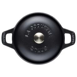 The animal lid knob “cow” fits all Staub cocottes with a diameter between 18 and 41 cm. The original lid knob can easily be replaced with the animal figure. It is made of stainless steel with a silver colour perfectly complimenting the cocottes’ look. Serve your dishes in the cocotte with the cow-shaped lid knob in an original way.